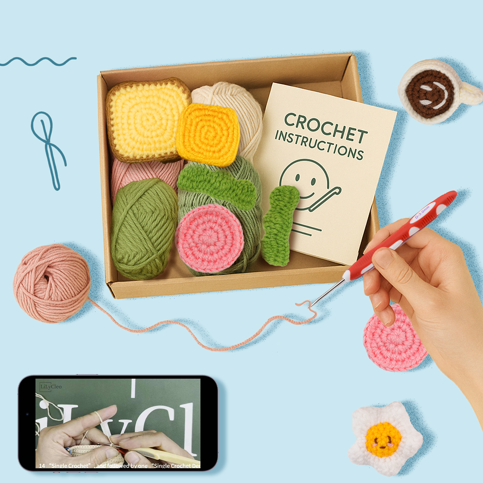 Waking up your day is not just about coffee, but also about the fun of creation! This breakfast-themed crochet learning kit carefully prepares a table of "cute breakfast" for you - all crocheted by you. Whether you are a novice knitter or a master who loves DIY, this kit will bring you a fulfilling and healing hand-made time