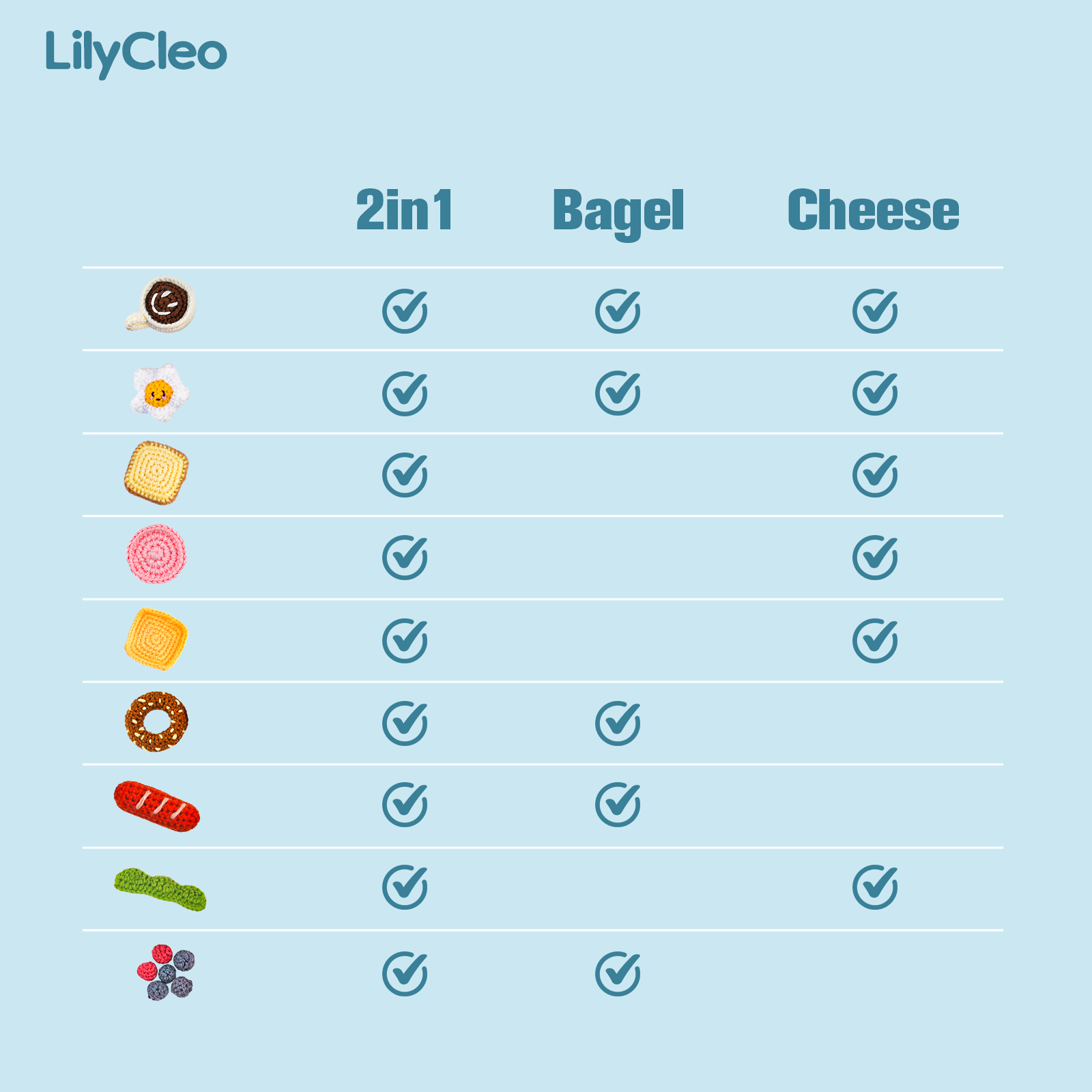 This crochet kit includes 6 adorable items: Coffee, Toast Slice, Cheese, Fried Egg, Ham Slices, and Leafy Greens. You can complete each piece one at a time, with the simplest taking just 5 minutes to finish. It's perfect for beginners, no need to worry about complicated crochet projects anymore!